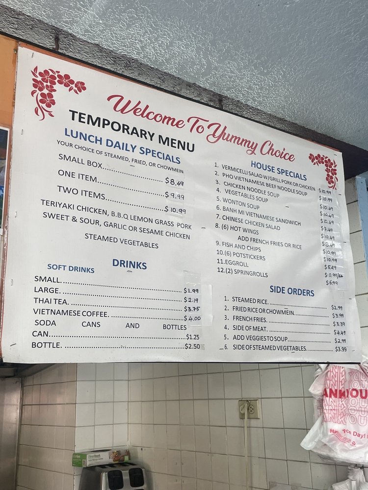 Introducing Yummy Choice, an Asian Fusion gem tucked away in Sacramento, CA. This inviting eatery specializes in Chinese and Vietnamese cuisine, perfect for a casual lunch or a family dinner. With a blend of vibrant flavors, their featured dish, the Vermicelli Salad with Grilled Pork or Chicken, showcases a delightful mix of textures and tastes. The Pho Vietnamese Beef Noodle Soup is another standout, sure to warm your soul.