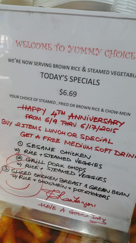 Yummy Choice Menu